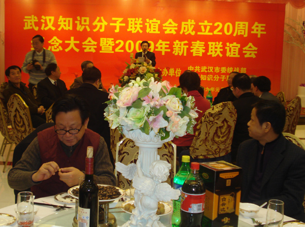 1月15日,武汉知识分子联谊会(以下简称“市知联会”)成立20周年纪念大会暨2009年新春联谊会在武昌召开,出席大会的有市委特邀顾问、市知联会名誉会长单大年,中国科学院院士、华中科技大学原校长、市知联会名誉会长杨树子,市委统战部原副部长刘秀庭、帅松芬、熊继汉,市知联会顾问许其贞、张廷壁、李木林,市委统战部副部长吕盛东、向天华、麻杰、巡视员晏友桂及武汉地区高校、市直委局、大型国企、科研院所统战部门的负责人等。总裁潘世炳、副总裁高军也参加了本次会议。