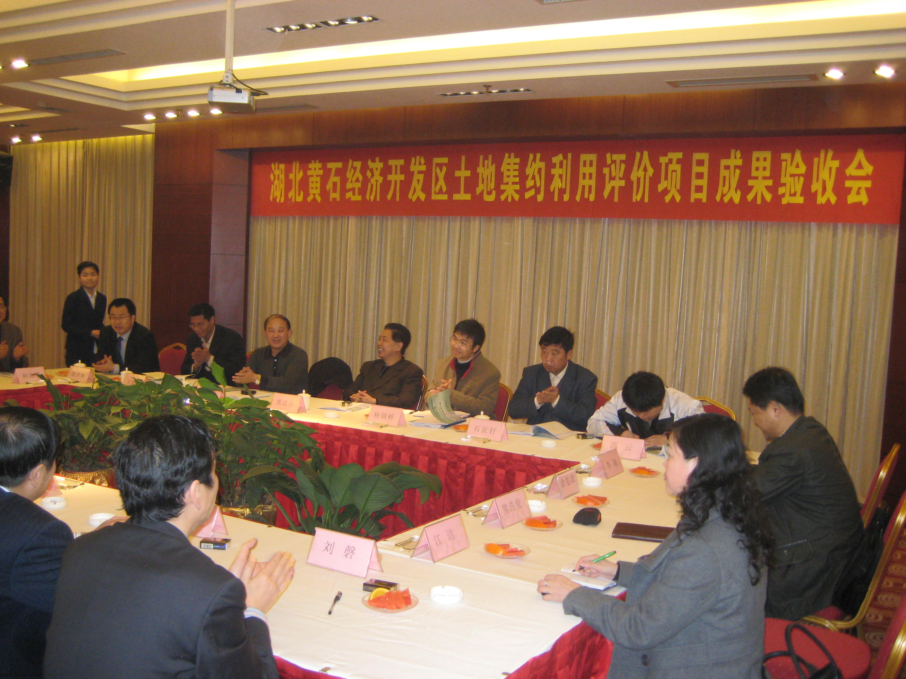 参加本次验收工作的领导及专家有:湖北省国土资源厅副厅长熊政春,利用处副处长陈大才、助理调研员石征轩,国土资源监测中心副主任万滋仁,黄石市国土资源局局长吴风雨、副局长李显清及武汉有关大学的专家教授等。黄石市常务副市长朱中华,黄石经济开发区管委会主任胡超、副主任刘磬,黄石经济开发区国土局局长柯海燕等参加了会议。永业行总裁潘世炳,副总裁李翔,研究部总经理江洁、高级经理侯希,黄石分部总经理熊浩俊、副总经理余旭波等也参加了本次会议。