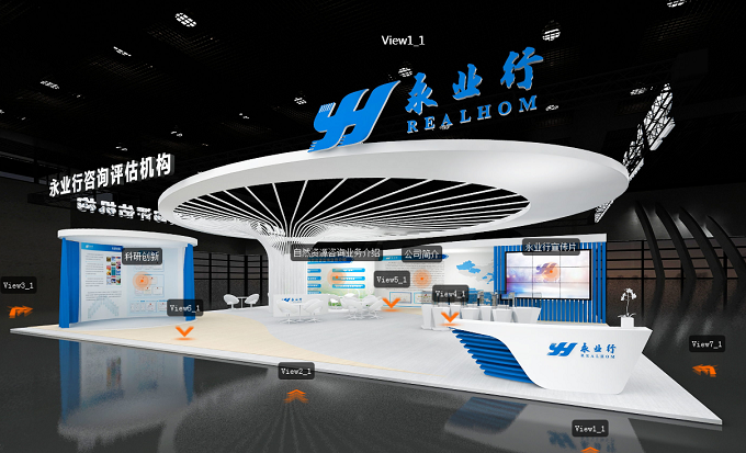 云展会上搭建的永业行咨询评估机构3D展台,对我司业务版块和优秀规划成果进行了展示。