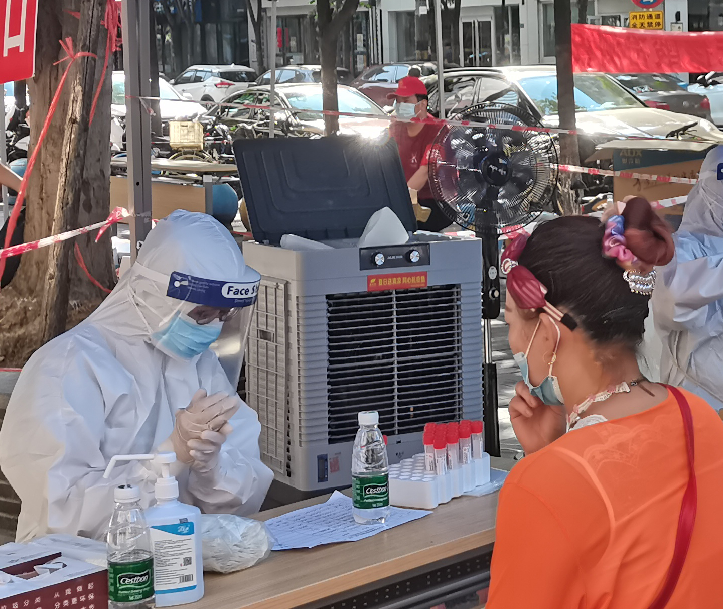 时值盛夏时节,高温酷暑,节节攀升的高温对核酸检测工作来说一场艰巨的“烤验”。为帮助坚守在一线的医护、社区工作者做好防暑降温措施,永业行党委、青年委员会迅速采购150余件矿泉水、功能型饮料、凉茶等降温解暑饮品、大型户外凉风设备通过水岸国际社区送往多个核酸检测点,向他们致以诚挚的感谢和崇高的敬意。