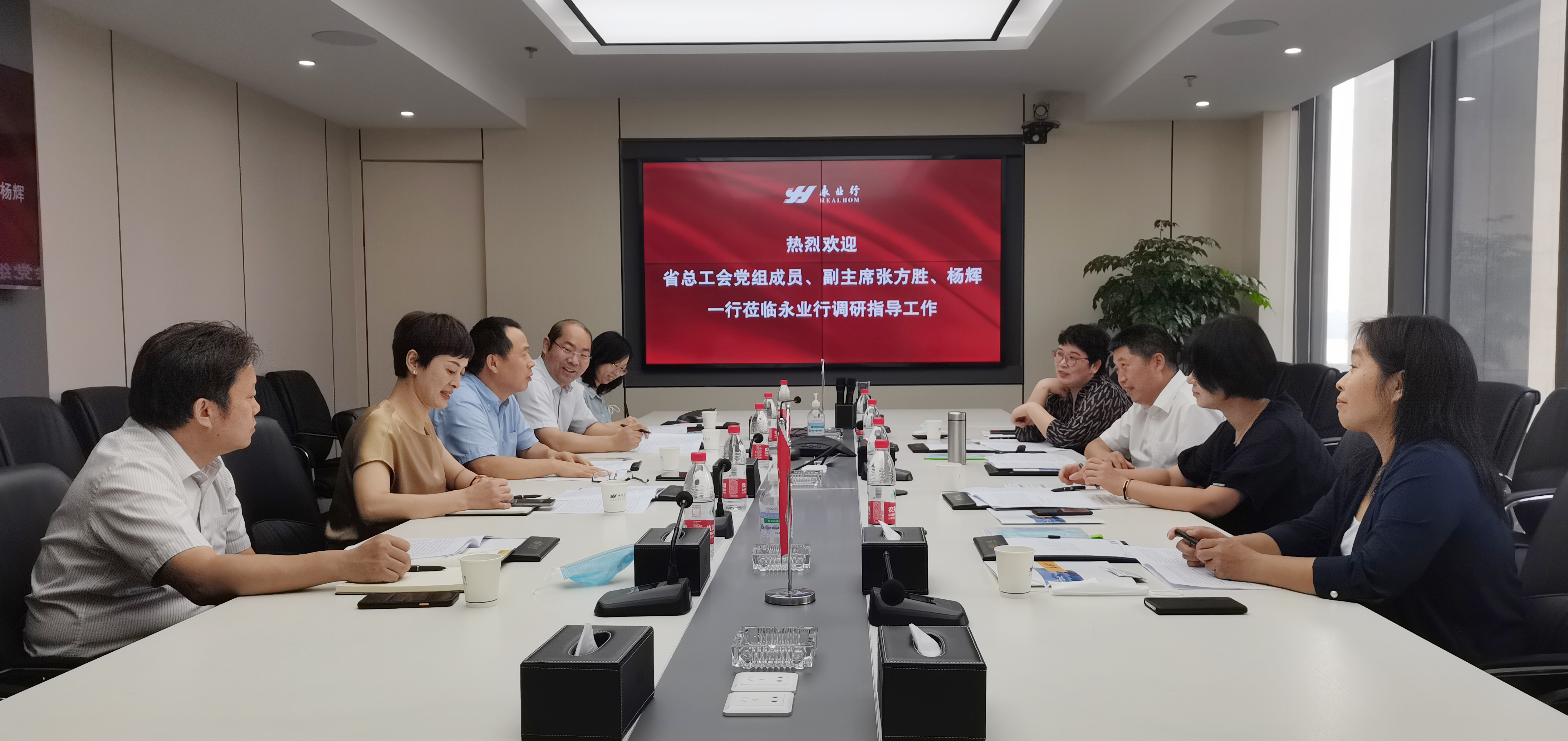 省总工会党组成员、副主席张方胜、杨辉一行赴永业行座谈调研