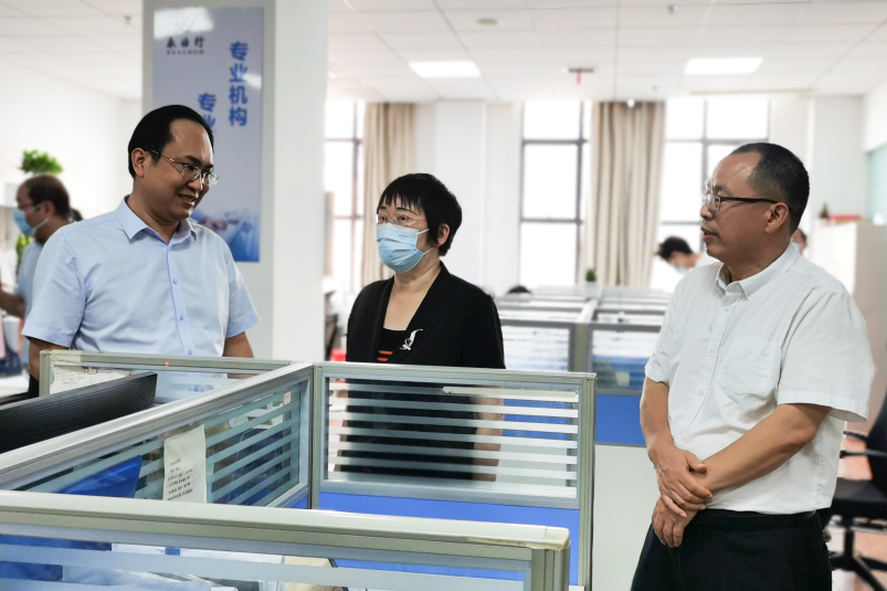 洪再林一行参观了黄冈分公司办公场所,听取了潘世炳就永业行在黄冈的发展历程,以及党建引领、组织架构、业务开展等情况介绍,详细了解了相关工作情况。
