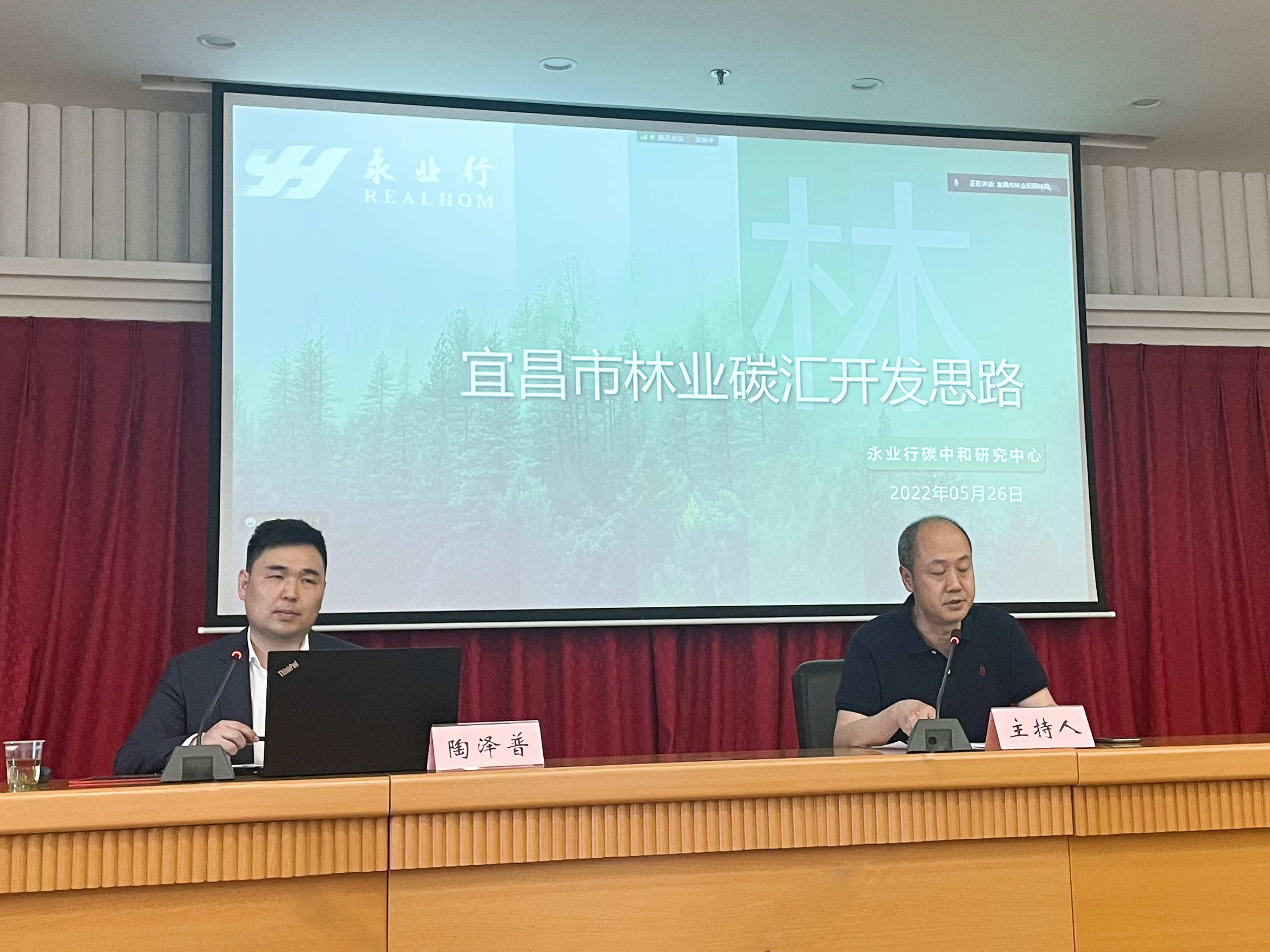 2022年5月26日,永业行碳中和研究中心办公室副主任陶泽普应邀为宜昌市林业系统作《宜昌市林业碳汇开发思路》专题分享交流培训。宜昌市林业和园林局党组成员工会主任何清泉主持本次培训会。