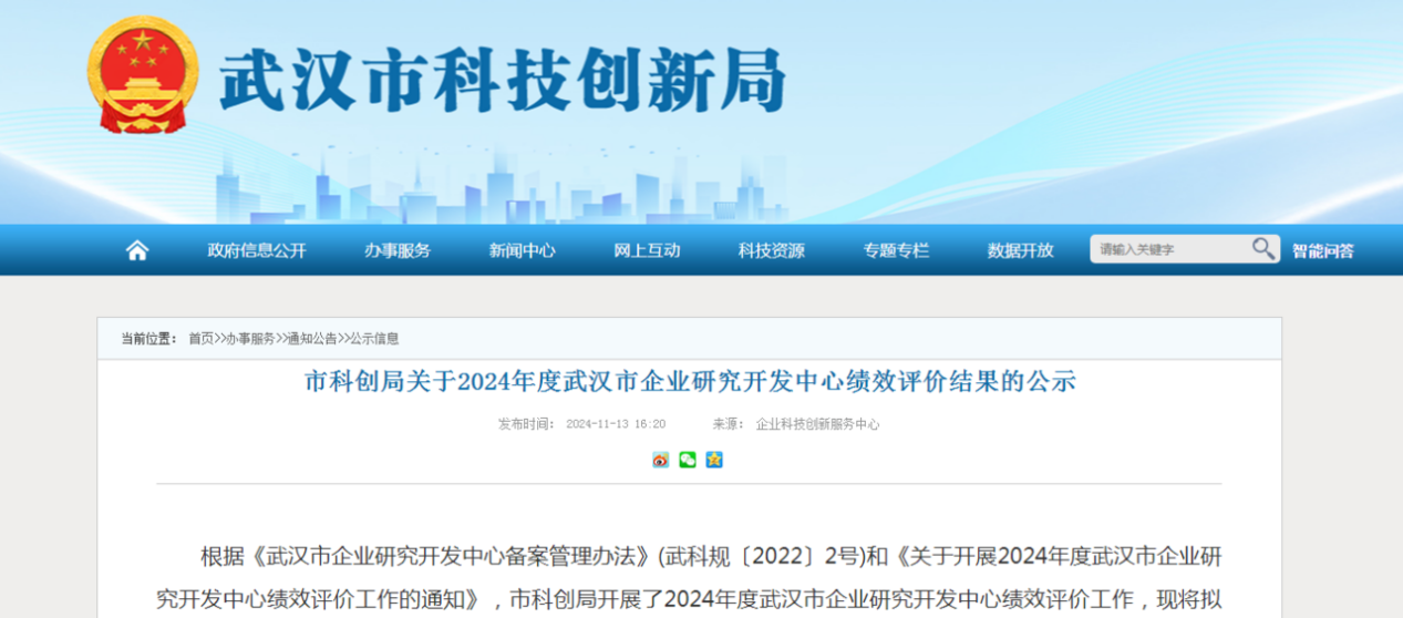 近日,武汉市科技创新局公示关于2024年度武汉市企业研究开发中心绩效评价结果,278家企业研究开发中心接受了绩效考核,永业行等12家企业评为“优秀”等次。