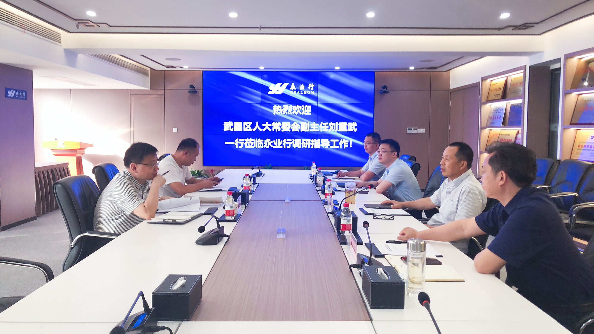 2022年6月7日,武昌区人大常委会副主任刘重武一行莅临永业行,就企业纾困解难、惠企政策落实进行走访调研,认真听取企业诉求和意见建议。省政协委员、永业行董事长潘世炳热情接待并与调研组座谈交流。